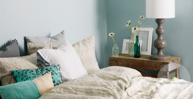 Yatak odalarınız için sıcak, soğuk, maskülen ya da kontrast renklerden seçim yapabilirsiniz. Seçiminiz ne olursa olsun renginiz sizi yansıtsın! Yatak odamız yeni bir güne gözümüzü ilk açtığımız ve günü bitirdiğimiz, bizim için çok özel bir mekan... Seçeceğimiz renk, sabah güne verimli bir şekilde başlamamıza ve geceleri de huzurlu bir şekilde uykuya dalmamıza yardımcı olmalıdır. Çok koyu renkler ve sert kontrastlar yerine daha yumuşak ve göz yormayan renkler seçilebilir. Yeşil, mavi ve mor renklerinin dinlendirici ve huzur verici etkileri bulunmaktadır. Bulundukları ortama dinginlik katarlar. Soğuk renk grubuna giren bu renklerin açık tonları yatak odalarında kullanılabilir. Eğer daha hareketli, cıvıl cıvıl bir odanız olsun istiyorsanız sıcak renkleri kullanarak bu havayı yakalayabilirsiniz; fakat oda içerisindeki enerjiyi dengeleyebilmek için mutlaka tamamlayıcı rengi de oda içerisinde kulllanmaya özen gösteriniz.