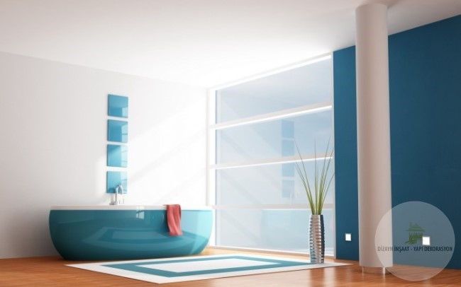 Banyolar genelde evimizdeki en küçük mekanımız... Banyolarımızı olduğundan daha da küçük göstermemek için doğru renk seçimi büyük önem taşımaktadır. "Sıcak renkler" bölümünde de değindiğimiz gibi kırmızı, turuncu, sarı gibi renkler duvarların birbirlerine olduğundan daha da yakın algılanmasına neden olurlar. Bu nedenle seçim yaparken sözkonusu renkleri ana renk olarak seçmemeniz çok daha doğru olacaktır. Banyolarda genel olarak en çok tercih edilen renk temizlik duygusunu da yansıttığı için beyazdır. Yansıtıcı özelliği ile de daha ferah ve geniş gözükmesine yardımcı olmaktadır. Beyazın yanısıra akla su ve doğa ile ilişkili olan maviler, yeşiller, akuamarineler yine tercih edilebilinecek renkler arasındadır.