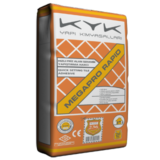 MegaPro Rapid; sağlam, tozsuz ve su emmesi düşük çimento esaslı sıva, şap, astarlı beton yüzeyler üzerine, su emme oranı düşük seramik kaplama malzemelerinin iç mekanda yatay ve düşey, dış mekanda yatay yüzeylere yapıştırılmasında kullanılır.