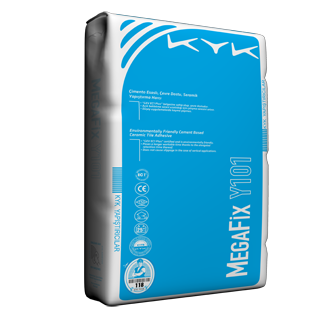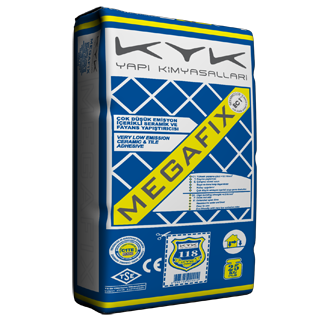 MegaFix; sağlam, tozsuz, su emme oranı düşük çimento esaslı sıva, şap, astarlı beton yüzeyler üzerine, duvarda 25x40 cm ve yerde 33x33 cm ölçüsüne kadar olan kaplama malzemelerinin iç mekanda yatay ve düşey, dış mekanda yatay yüzeylerde ayrıca iç mekanlarda cam tuğlaların yapıştırılmasında kullanılır.