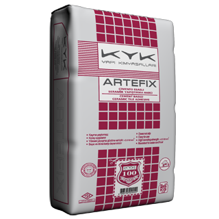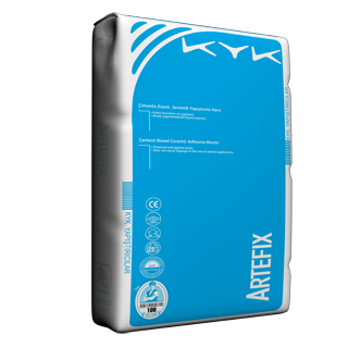 ARTEFIX; sağlam, tozsuz ve su emmesi düşük astarlı çimento esaslı sıva, şap üzerine kaplama malzemesi yapıştırılmasında kullanılır. 25x40 cm duvar ve 33x33 cm yer seramik ölçülerine kadar kaplama malzemelerinin, iç mekanda yatay ve düşeyde, dış mekanda yatayda yapıştırılmasında kullanılır.